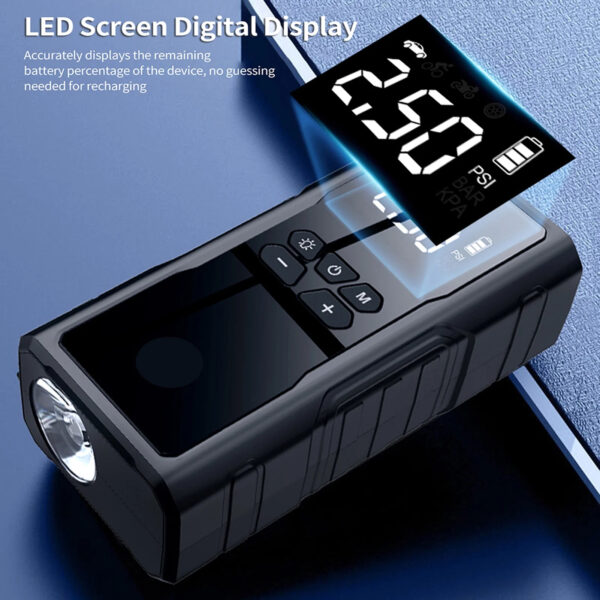 Multifunctional Jump Starter with Air Compressor, 150PSI Digital Tire Inflator, Portable 12V Car Battery Booster Pack with LED Display