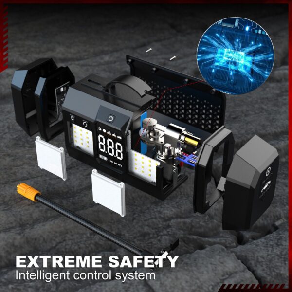 - Reliable Safety Protection: Built with an overheat protection system, this 150 PSI heavy-duty off-road air pump prevents motor damage from high temperatures, ensuring safe operation and long-lasting performance