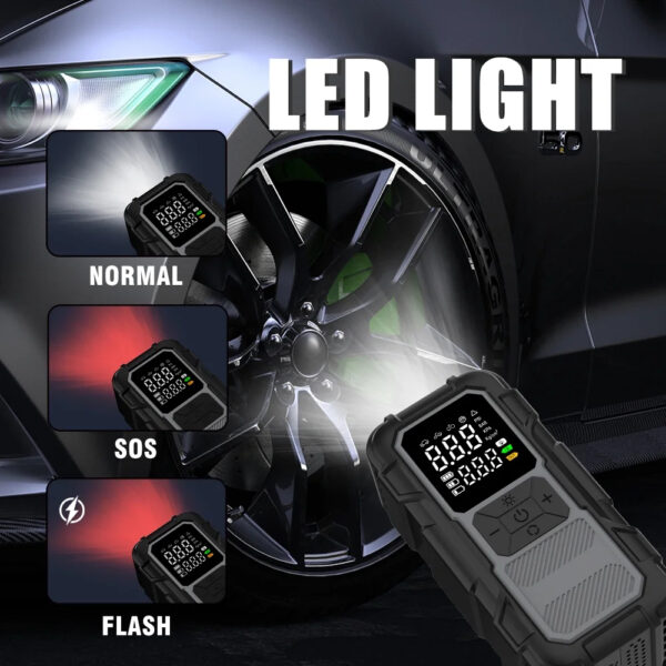 - Clear Digital Display & LED Light: The informative LED screen shows real-time battery level and power status, while the built-in emergency light provides visibility for roadside repairs or night-time emergencies.