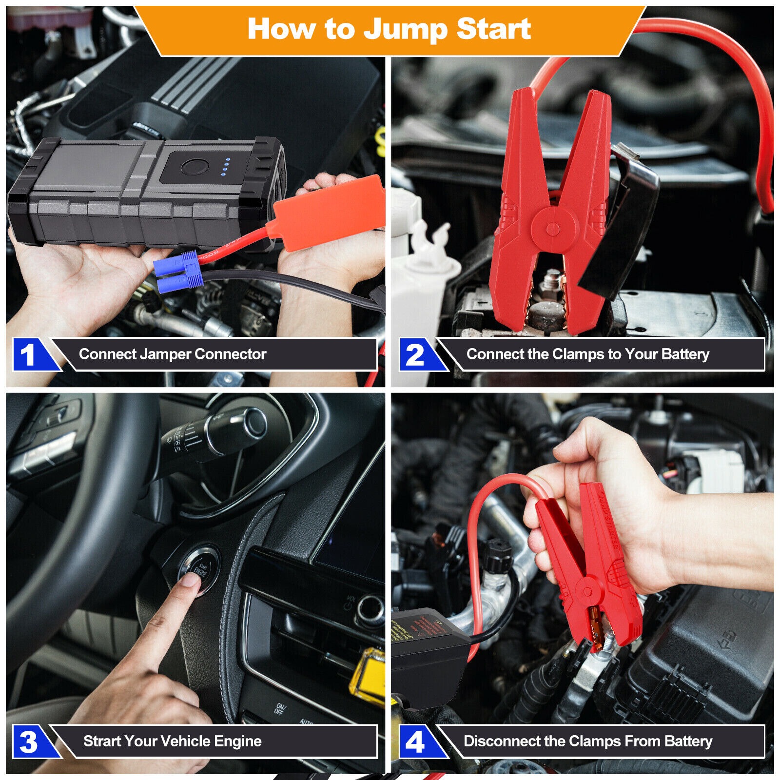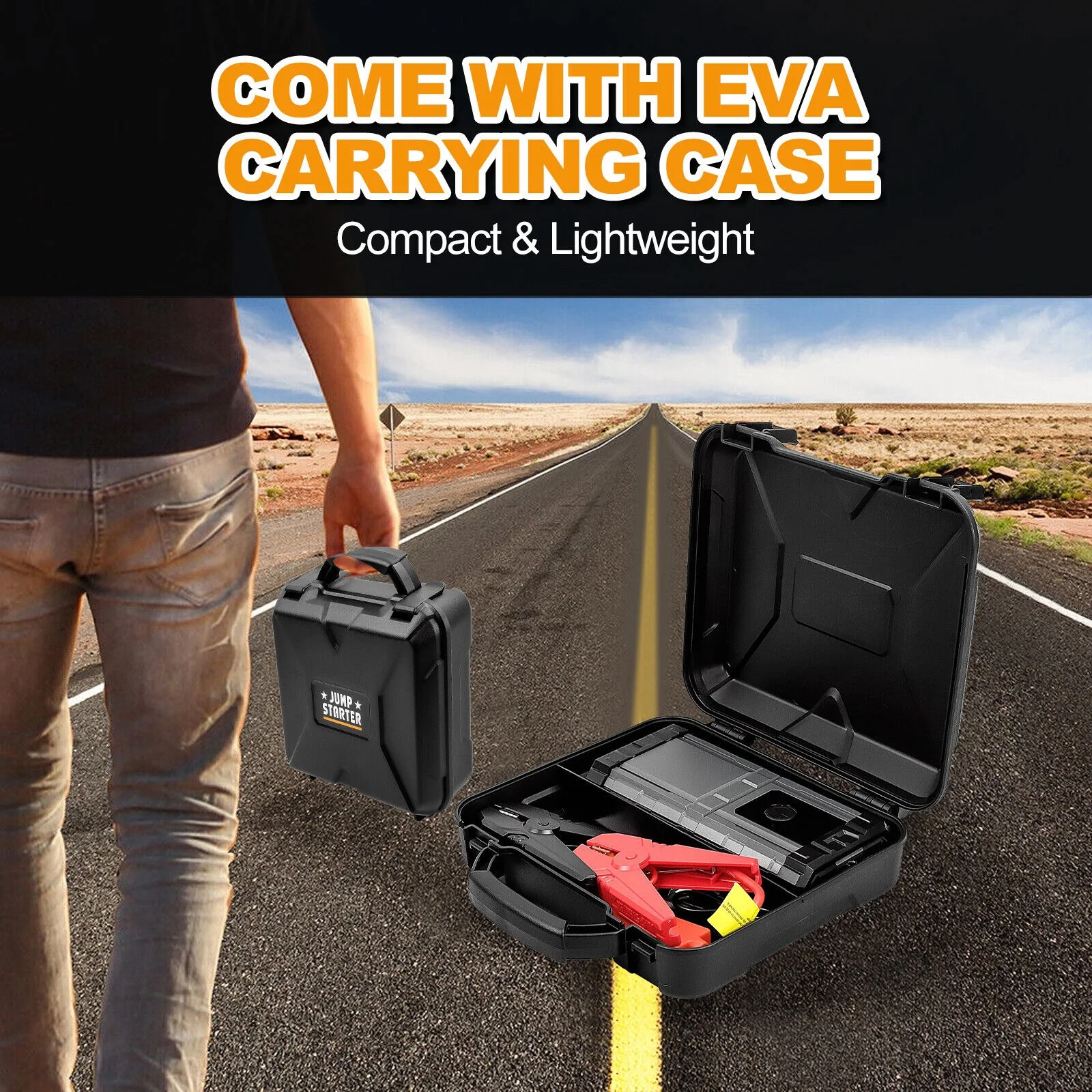 Our Jumper cables provides safty protections systems,keeping away from spark even in incorrect connections. Rugged and water-resistant enclosure rated at IP65 makes this jump boxes for vehicles can operate safely in any weather.